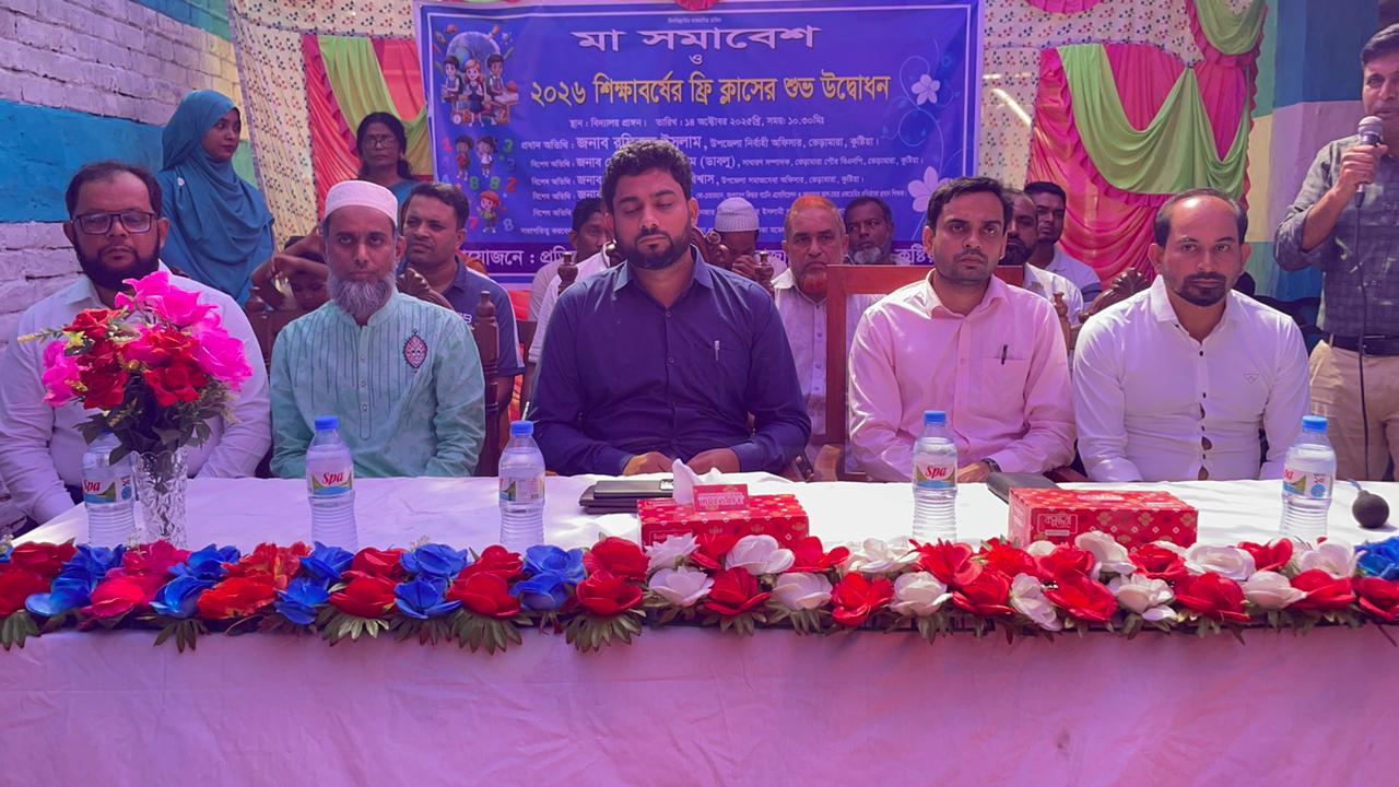 বিদ্যালয়ের প্রতিষ্টাতা প্রধান শিক্ষক ফিরোজ মাহমুদের সভাপতিত্বে অনুষ্ঠিত মা সমাবেশে বিশেষ অতিথির বক্তব্য রাখেন, ভেড়ামারা পৌর বিএনপির সাধারন সম্পাদক ও বিশিষ্ট রাজনৈতিক শফিকুল ইসলাম ডাবলু, ভেড়ামারা উপজেলা সমাজসেবা কর্মকর্তা ইমদাদুল ইসলাম বিশ^াস, ভেড়ামারা আলহেরা মডেল একাডেমী বিদ্যালয়ের প্রতিষ্ঠাতা অধ্যক্ষ ও বাংলা একাডেমীর জীবন সদস্য আলহাজ¦ হাসানুজ্জামান খসরু, ভেড়ামারা আল আরাফাহ ইসলামী ব্যাংকের ম্যানেজার আমিনুল ইসলাম, দৈনিক যুগান্তর পত্রিকার ভেড়ামারা প্রতিনিধি রেজাউল করিম, সাপ্তাহিক সীমান্ত কথা পত্রিকার সম্পাদক ও প্রকাশক হেলাল মজুমদার, ভেড়ামারা ল্যাব এইড ডায়গনষ্টিক সেন্টার এন্ড ডক্টরস পয়েন্ট’র ব্যবস্থাপনা পরিচালক সাংবাদিক শাহ্ জামাল প্রমুখ। বিশিষ্ট সাংবাদিক মনোয়ার হোসেন মারুফের সাবলীল উপস্থাপনায় অনুষ্ঠিত মা সমাবেশ শেষে লাল ফিতা কেটে ২০২৬ সালের কোমলমতি শিশু শিক্ষার্থীদের পাঠ্যক্রম কার্যক্রমের শুভ উদ্বোধন করেন প্রধান অতিথি রফিকুল ইসলাম এবং বিশেষ অতিথি শফিকুল ইসলাম ডাবলু। এসময় কোমলমতি শিশু শিক্ষার্থীদের ফুল দিয়ে নতুন ক্লাশে বরন কওে নেওয়া হয়।