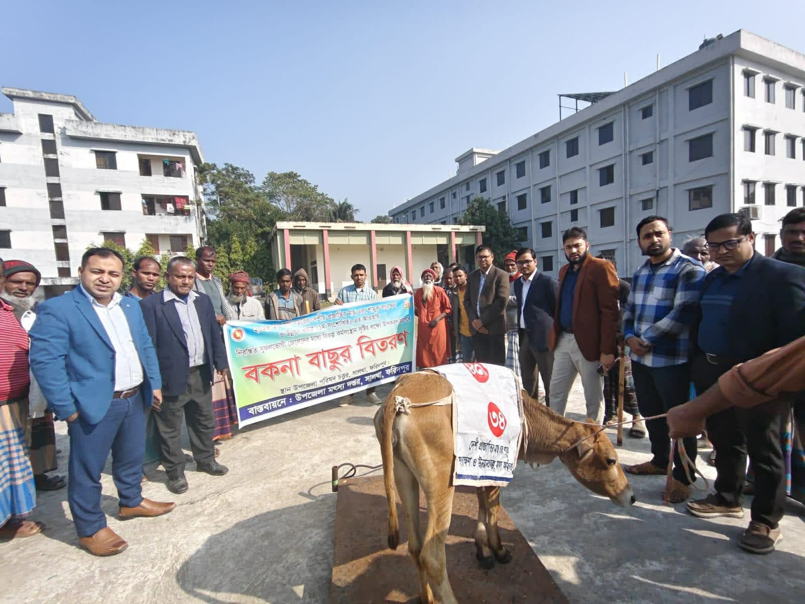 সালথায় দেশীয় প্রজাতির মাছ ও শামুক রক্ষায় জেলেদের মাঝে বকনা বাছুর বিতরণ