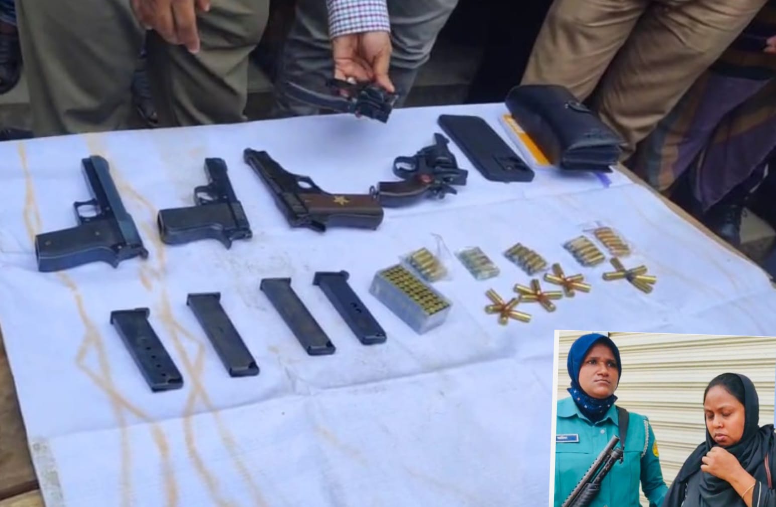 অভিযানকালে তার হেফাজত থেকে ৩টি বিদেশি পিস্তল, ২টি রিভলভার, ৪টি ম্যাগাজিন এবং ৯৬ রাউন্ড গুলি উদ্ধার করা হয়।